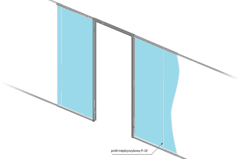 Profil P-12, P-12/3 przeznaczony jest do łączenia pojedyńczych szyb (pojedyńczego szkła). Szyb klejonych lub szyb hartowanych o grubości 12-12,5 mm.