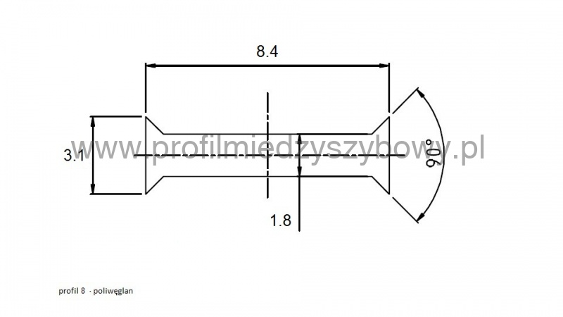 Профиль P-8 предназначен для соединения цельных панелей из клееного или закаленного стекла толщиной 8 мм.